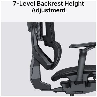Stolens dynamiska ländryggsstöd anpassar sig till olika kroppsställningar och ger ett stabilt ryggstöd i alla positioner. Med en fritt flytande lutningsmekanism erbjuder det 7-stegs justerbara ryggstödet en lutningsvinkel från 105° till 126°, vilket ger en loungeliknande komfort och tillgodoser olika sittpreferenser.