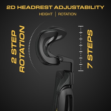 Det höjdjusterbara sätet låter dig hitta rätt sittnivå för din setup, vilket främjar bättre hållning och komfort. Tillsammans med ett 2D-nackstöd som justeras både i höjd och vinkel får du extra nackstöd oavsett om du sitter upprätt eller lutar dig bakåt.