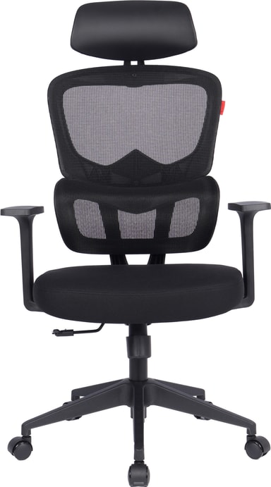 Sitsen är tillverkad av mjukt material och stolen har ett ryggstöd i nät med inbyggt svankstöd för optimal komfort.