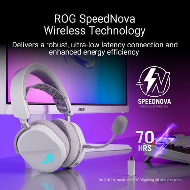 Växla mellan olika lägen för perfekt balans mellan prestanda och flexibilitet, tack vare headsetets tre anslutningslägen. Detta headset erbjuder mångsidiga anslutningsmöjligheter med Bluetooth för trådlös bekvämlighet, ultralåg latens via 2,4 GHz med ROG SpeedNova-teknik för lagfritt spelande, och en USB-C-anslutning för stabil ljudkvalitet.