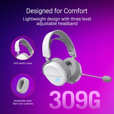 Designad för komfort och prestanda är ASUS ROG Pelta Wireless gaming-headset din ultimata spelpartner. Med förstklassigt ljud från 50 mm titanmembranselement och frekvensrespons på 20Hz-20kHz, medan den 10 mm bredbandsboommikrofonen låter dig kommunicera med dina lagkamrater för att vinna. Njut av trådlöst ljud via Bluetooth eller USB-C, och upp till 90 timmars batteritid för långa spelsessioner.