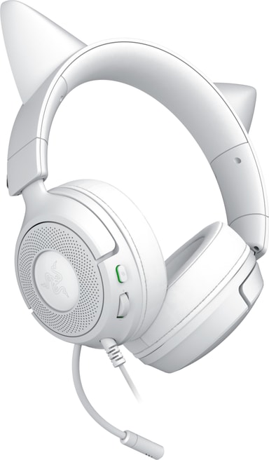 Razer Kraken Kitty V3 X gaming-headset har Razer TriForce 40mm-element, 3,5 mm kabelanslutning, Razer HyperClear Cardioid-mikrofon, lätt konstruktion och 7.1 surroundljud för ett precist ljudlandskap.Läs mer om produkten