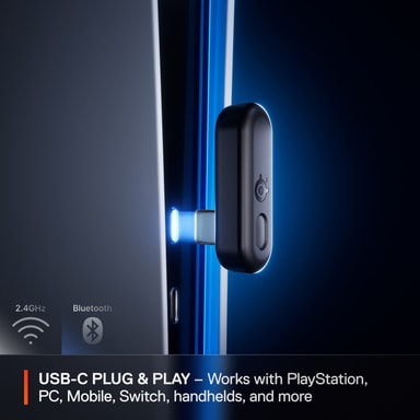 Den pålitliga 2,4 GHz USB-C L-formade trådlösa dongeln ger en ljudupplevelse med låg latens som är viktig för spel på PC, PlayStation, Switch och mobil. Dessa hörlurar stöder även Bluetooth 5.3-anslutning.