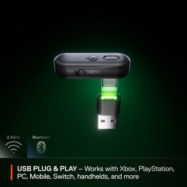 Den pålitliga 2,4 GHz USB-C L-formade trådlösa dongeln ger en ljudupplevelse med låg latens som är viktig för spel på PC, Xbox, Switch och mobil. Dessa hörlurar stöder även Bluetooth 5.3-anslutning.