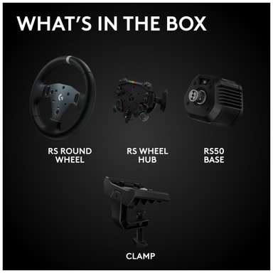 RS50-systemet är byggt kring ett snabbfäste som gör det enkelt att byta mellan olika rattar beroende på vilken typ av racing du kör. Systemet är kompatibelt med olika Logitech G Racing Series-rattar, som RS Track Wheel för uthållighetsracing eller RS Round Wheel för rally och drifting.