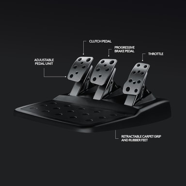 Få en mer realistisk förarställning med hjälp av en separat fotpedal med inbyggda gas-, broms- och kopplingspedaler.