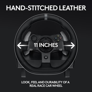 Tryck plattan i botten och känn känslan i ratten. Logitech G920 Driving Force är en realistiskt skapad ratt med dubbla force feedback-motorer och glappfri växling med skruvdrev.