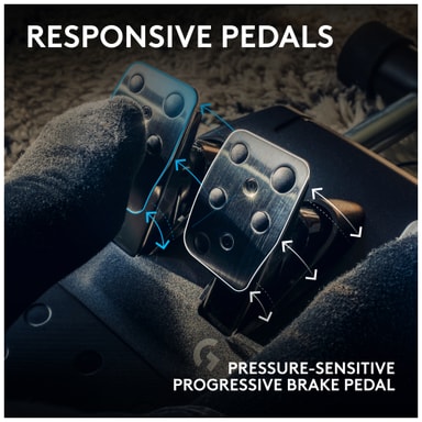 Med Logitech G923 Racing ratt och pedaler för PC och Xbox One kan du slå hastighetsrekord och njuta av en realistisk racingupplevelse. TRUEFORCE-tekniken ger särskilt noggrann feedback genom ratten och den programmerbara dubbla kopplingen samt den tryckkänsliga bromspedalen ger dig en snabb snart i alla lopp.