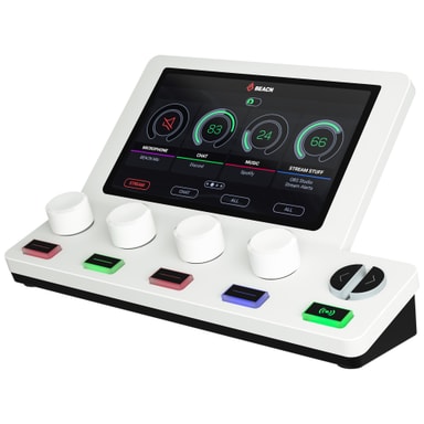 Beacn Mix Skapa ljudkontroll låter dig enkelt hantera ditt ljud under streaming. Du kan lägga till spel, musik, systemljud, videosamtal, webbläsare, headset, ljudgränssnitt eller mikrofoner. Dra bara källan du vill styra till en av de fyra rattarna i BEACN-appen och du är klar. Tryckknappskodarna ger dig exakt volymkontroll samt snabb dämpning, och du kan lägga till ett obegränsat antal källor och bläddra igenom dem med de dedikerade knapparna. Om du vill ha specifika källor på skärmen hela tiden kan du låsa dem och bläddra mellan resten. Det finns till och med en submix-knapp som låter dig och din publik höra olika nivåer av källor, och du kan tilldela olika färger eller byta namn på dem. Du ser allt på den fantastiska fullfärgsdisplayen på 5 tum.