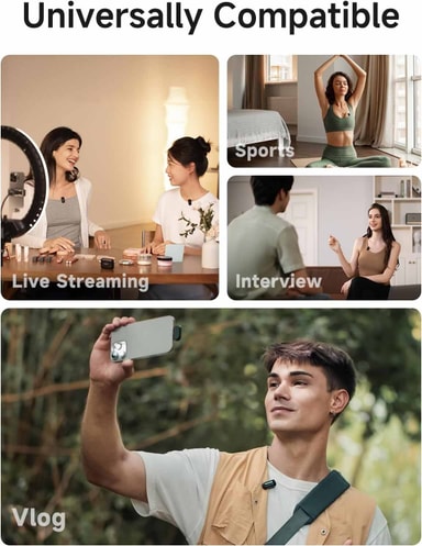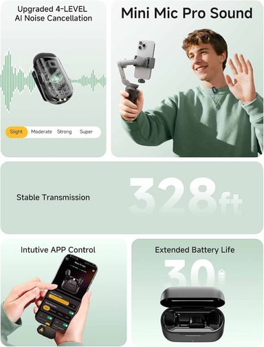Maono PC2 mini trådlös mikrofon är en liten trådlös mikrofon som levererar tydligt 48kHz/16bit studiokvalitetsljud. Den har 4-stegs AI-brusdämpning, lång batteritid på upp till 30 timmar och fungerar enkelt med telefoner, surfplattor och datorer via Lightning eller USB-C, vilket gör den perfekt för vloggning, streaming och inspelning på språng.