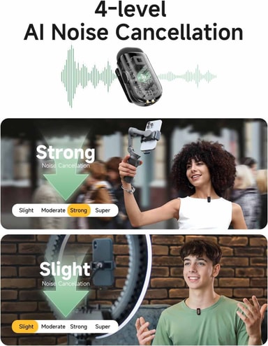 Denna mikrofon har 4-stegs AI-brusdämpning som håller din röst tydlig genom att minska bakgrundsljud i alla inspelningsmiljöer.