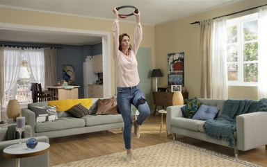 I Ring Fit Adventure utforskar du en stor värld och slåss mot fiender samtidigt som du utför fitnessliknande övningar.Läs mer om produkten