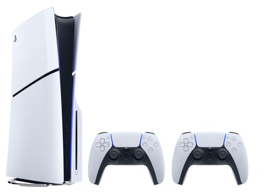 Njut av snabbt och smidigt spelande med spelkonsolen PlayStation 5 Slim Standard Edition. Den levereras med en skivläsare och en 1TB SSD för gott om lagringsutrymme. Med två DualSense-kontroller inkluderade är du redo för flerspelarskoj direkt.Läs mer om produkten