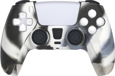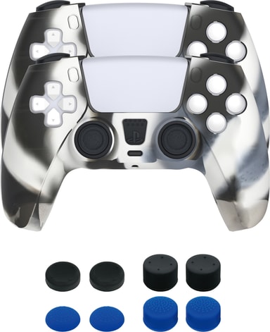 Piranha skydd och grepp för PS5-kontroll förbättrar ditt grepp och förlänger livslängden på ditt kontroll genom att skydda den mot repor, smuts och damm- Förpackningen innehåller två kamourflagefärgade silikonskydd som är enkla att applicera och som inte täcker knappar och portar. Du får även med 8 tumgrepp i silikon i olika färger, former och med olika höjd så att du kan välja och vraka för att skapa den perfekta kontrollen för dig.