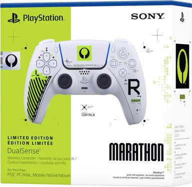 PlayStation DualSense Marathon Limited Edition-kontroll för PS5 har en djärv industriell design, skapad för att dra in dig direkt i den högoktaniga actionen i Marathon. Njut av uppslukande spelupplevelse med haptisk feedback och adaptiva avtryckare, medan den inbyggda mikrofonen säkerställer sömlös kommunikation med ditt team när ni tar er ut ur den fientliga miljön på Tau Ceti IV.