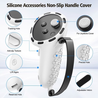 För Meta Quest 3S silikontillbehörsset med VR-headsetskydd / kontrollgrepp / ansiktsmask - Vit【Komplett skydd】 Silikonset i sju delar ger omfattande skydd för ditt VR-headset och dina kontrollenheter.【Perfekt passform】 Specialgjuten design säkerställLäs mer om produkten