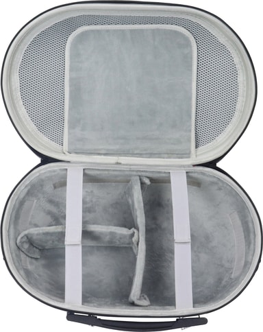 Maxx Tech VR-fodral är kompatibelt med de flesta VR-headset. Det yttre skalet har en vattenavvisande finish för extra skydd och mjuk inredning. Kardborrebanden håller påsarna med dragsko på plats och avdelare hjälper till att hålla tillbehören och kontrollerna på plats.