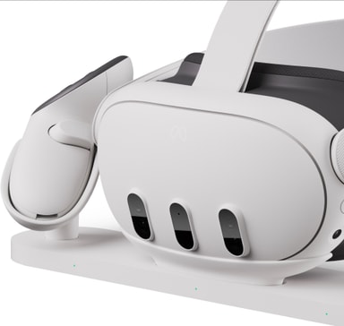 Var alltid redo för lite VR-action tack vare Meta Quest 3 laddningsdocka, en allt-i-ett trådlös enhet som kan ladda dina Meta Touch Plus-kontroller och Meta Quest 3 VR-headset. Du kan se laddningsstatus på LED-lampan.Läs mer om produkten