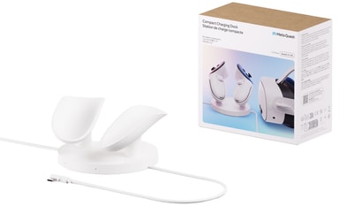Var redo för lite VR-action var du än är tack vare Meta Quest 3/3S kompakt laddningsdocka, en 2-i-1-enhet som kan ladda dina Meta Quest Touch Pro-kontroller och Meta Quest3/3S-headset med en USB-C-anslutning.Läs mer om produkten