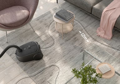 Enheten är enkel att manövrera över olika ytor och golvtyper, och tack vare dess arbetsräckvidd på 12 meter har du massor med frihet att dammsuga även större rum och mellan rum. Det teleskopiska röret är mycket justerbart för extra komfort och bekvämlighet.