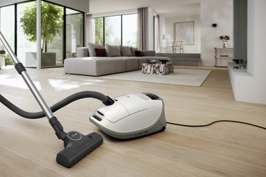 Vår Miele Guard-dammsugare erbjuder den ideala kombinationen av högsta sugeffekt och obegränsad användningstid – optimalt för stora ytor. Med en kraftfull fläkt, optimerade luftvägar och passande golvmunstycken dammsuger den extra grundligt. Tack vare det nya dammpåssystemet med de kraftfulla utblåsningsfiltren uppnås en förstklassig nivå av prestanda och hygien. Med denna dammsugare får du en pålitlig och grundlig rengöring.