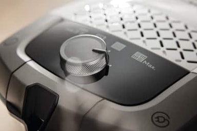 Den elektroniska sugeffektsregleringen sker med ett vridreglage och märkningen för olika användningsområden gör det lätt att välja den optimala sugeffekten.