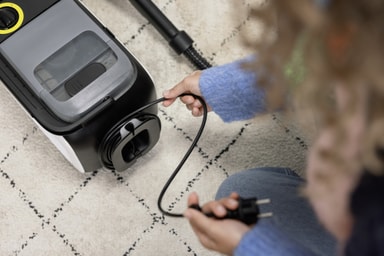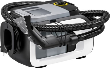 Kärchers mattrengörare har en lång, flexibel slang för enkel rörlighet och effektiv rengöring. Dess tillbehör kan bekvämt förvaras runt rengöraren, vilket håller allt kompakt och lättillgängligt.