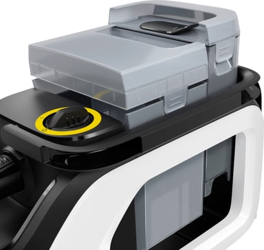 Dammsugaren har ett avtagbart 2-i-1-tanksystem för separat förvaring av rent och smutsigt vatten. Den levereras med en 1,7-liters vattentank för kontinuerlig rengöring.