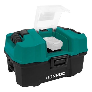 Den här kompakta allrounddammsugaren levereras utan batteri och laddare, eftersom den ingår i VONROC VPower 20V Plattform. Beställning av utbytbara 2,0Ah eller 4,0Ah-batterier är valfritt. Om du vill kombinera dammsugaren med en annan produkt från VONROC VPower 20V-plattformen räcker det med ett batteri och en snabbladdare! Det är bara att välja det väsentliga, till ett konkurrenskraftigt pris!