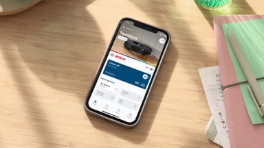 • Bosch Home Connect App: parar lätt ihop med roboten, erbjuder intuitiva kontroller, tydliga meddelanden och användarvänligt stödmaterial.