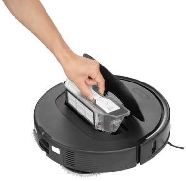 Robotdammsugaren använder ett påslöst filtreringssystem som använder ett HEPA-filter för att fånga upp fina dammpartiklar, djurhår och andra föroreningar runt huset.