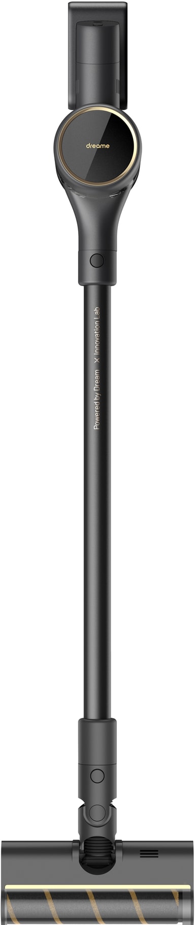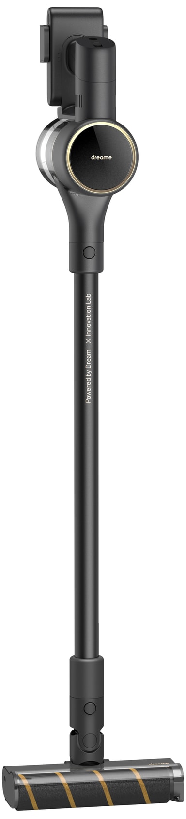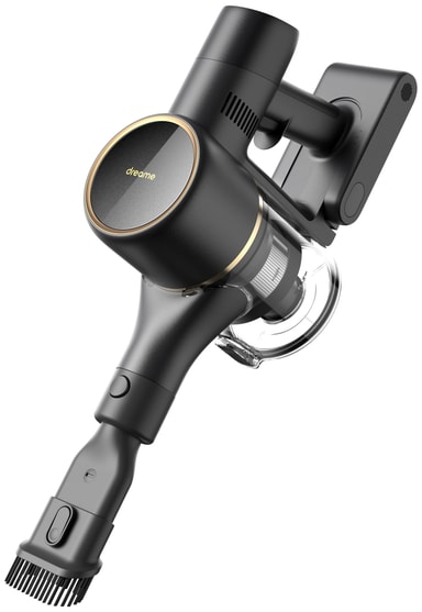 Dammsugaren är funktionell och elegant och kommer i en svart design med inslag av guld samt ett borsthuvud för flera sorters ytor som är utrustat med praktiska LED-lampor som gör det enklare att se mindre partiklar.