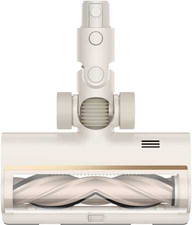 Dammsugaren är funktionell och elegant och kommer i en vit design med inslag av guld samt ett borsthuvud för flera sorters ytor som är utrustat med praktiska LED-lampor som gör det enklare att se mindre partiklar.