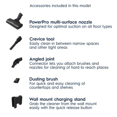 Litiumjonbatteriet kommer hålla i upp till 50 minuter när det är fulladdat. Du slipper snubbla på jobbiga förlängningssladdar - denna sladdlösa dammsugare kommer göra städningen enkel.