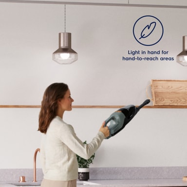 Du kan använda dammsugare med det långa skaftet eller ta loss handdammsugaren för att göra rent möbler och andra ytor.