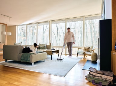 En självrengörande borstvals tar bort hår medan du städar och förhindrar trassel från långt, kort eller djurhår, perfekt för djurägare.