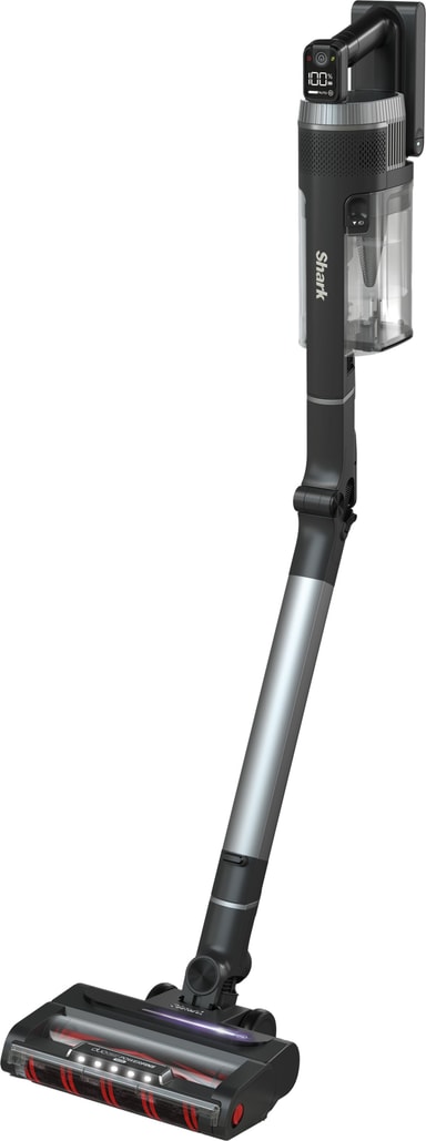 Shark Stratos sladdlösa dammsugare IZ420EUT ger upp till 120 minuters städning med dubbla batterier, justerar automatiskt sugkraften med Clean Sense IQ och hanterar alla golvtyper med DuoClean-rullar och PowerFins Plus med Anti Hair Wrap. Dess Flexology-skaft böjs för att nå under möbler och kan vikas ihop för kompakt förvaring, medan Anti-Allergen Complete Seal och husdjursverktyget gör den perfekt för hem med husdjur.