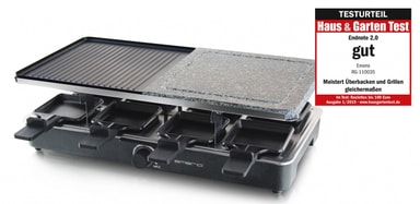 Med denna funktionella och effektiva raclette-grill från Emerio blir middagen ett sant nöje. Låt bordet fyllas med mängder av olika råvaror och låt alla göra sin egen favorit-måltid. Tillaga ljuvligt smält ost och andra tillbehör med de 8 minipannorna och grilla valfri mat på den effektiva naturstenen eller på aluminiumplattan med ett utsökt resultat - för alla smaker.