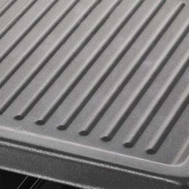 Designen är snygg i svart med en övre praktisk grillyta på 21 x 21 cm och 4 platser för grillspadar och smältning av tillbehör. Non-stickbeläggningen gör både grillningen och smältningen smidig och grillspadarna har praktiska handtag att hålla i. Raclettegrillen är dessutom väldigt lätt att rengöra och de stabila antiglidfötterna håller grillen tryggt på plats under användningen.