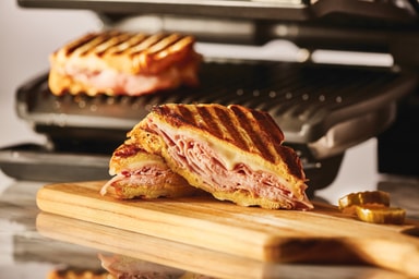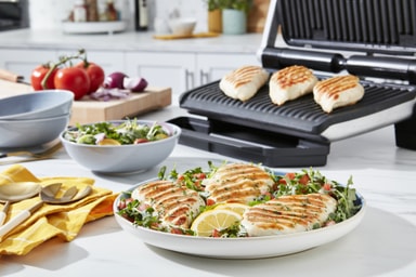 Bordsgrillen har 9 automatiska program, så du kan laga olika rätter som hamburgare, fågel, paninis, korv, nötkött, fisk, skaldjur, fläsk och bacon. Det manuella läget har 4 temperaturinställningar, perfekt för att grilla frukt eller grönsaker.