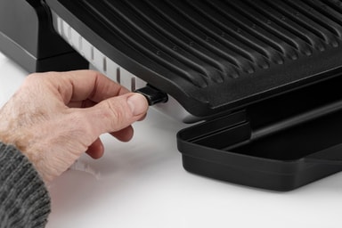 Grillplattorna är avtagbara, har en nonstick-beläggning och kan ställas in i diskmaskinen efter användning. Grillplattorna lutar så att fettet kan rinna av enkelt.