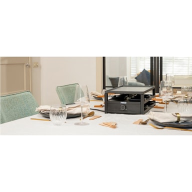 Princess nya stilfulla Raclette 162655 med en mattsvart hölje passar den på alla bord och dukningar för upp till 8 personer