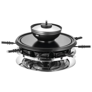 Unold Raclette 8 fonduegafflar, 8 pannor, Non-stick-beläggning, steglös temperaturregulator Rostfritt stål, SvartRaclette och fondue för upp till 8 personerRaclette, fondue, het sten och grill - kan användas separat eller i kombinationNon-stickbelagdLäs mer om produkten