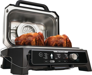 Med Ninja Woodfire Pro Connect XL elgrill OG901EU. kan du övervaka och kontrollera din matlagning direkt från telefonen. Upplev en autentisk kolgrillad finish på en elgrill.