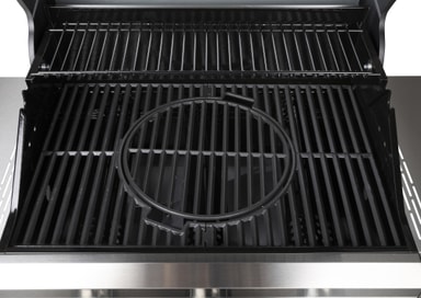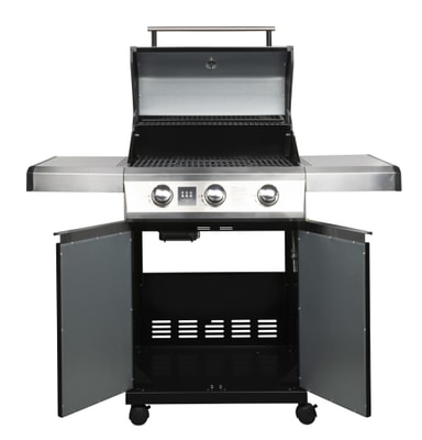 Grillen har dubbelisolerat emaljerat lock med sidoväggar i gjutna aluminium, emaljerad grillstomme, tre brännare i rostfritt stål, med integrerad tändning, mattlackerade grillgaller i gjutjärn med värmehylla, MGS-system (Multi Grill System) för varierad grillning, skåpsbotten med dörrar, fyra hjul varav två är låsbara.