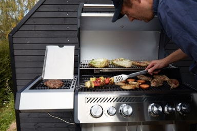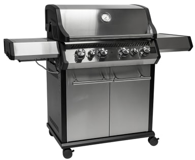 FCC Patrone 4.2 är den ultimata gasolgrillen med många möjligheter. Patrone 4.2 kan grilla vad du vill och både bakre brännare och searsidobrännare ingår. Den passar till alla typer av råvaror som går att grilla. Grillen är tillverkad av gjuten aluminium, rostfritt stål, emaljerat och målat stål. Grillen har 4 kraftfulla huvudbrännare, 1 bakre brännare och en keramisk searingsidobrännare, stor grillyta på 76x46 cm (+ extra stor värmande hylla) med kraftfulla emaljerade gjutjärnsgaller. MGS-system som ger möjligheter till stor variation och flera tilläggsprodukter i vår MGS-serie (säljs separat). Grillen har en bakre brännare som är utmärkt om du vill installera ett spettset (säljs separat). Kraftfull infraröd sidobrännare, som ger dig möjlighet att grilla vid mycket hög temperatur. Sidobrännaren ger upp till 500 grader på grillgallret. Grillen har en pilotlåga som tänder huvudbrännarna och elektrisk pulständning på den bakre brännaren och sidobrännaren. Locket är tillverkat av gjuten aluminium i sidoväggarna, samt ett dubbelisolerat lock som ger högre värme. Termometer i locket. Grillkroppen är gjord av gjuten aluminium och rostfritt stål. Det gjutna aluminiumet gör att grillen håller värmen och ger mycket jämn värme över hela grillytan. Sidoborden har hängkrokar och det högra sidobordet kan fällas ner. Skåp med skåp och låsbara hjul. 10 års garantiprogram ingår vid registrering av grillen.