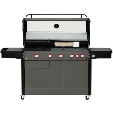 Gasgrill med 5 brännare och modern design, sidobrännare och en bakre brännare