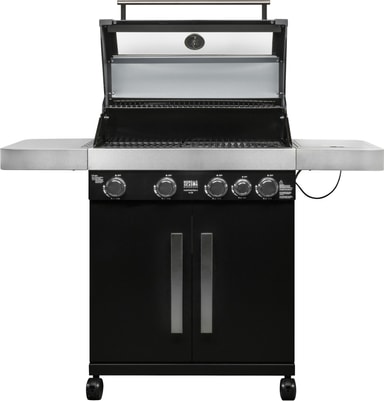 Grillen har dubbelisolerat lock med fönster och termometer, fyra huvudbrännare i rostfritt stål (#304), integrerad tändning, emaljerad grillbox och flamskydd, grillgaller i matt emaljerat gjutjärn, MGS-system för varierad grillning, värmehylla, stort sidobord med en sidobrännare, bas med förvaringsskåp och fyra låsbara hjul. Grillyta 73,5 x 45 cm + värmehylla. Mått efter montering: 138 x 60 x 116 cm. Effekt: 17 kW. För enkel montering och bra tips, skanna QR-koden i manualen och följ instruktionsvideon steg för steg.
