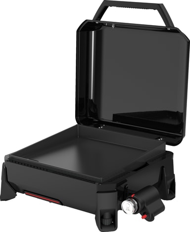 Denna kompakta gasolgrill har ett porslinsbelagt grillgaller och en hållbar stålbrännare för snabb och jämn tillagning. Med justerbara fötter kan du ställa upp den var som helst utomhus för stabil grillning.