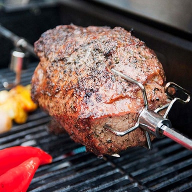 Rotisserie är ett roterande grillspett som passar gasolgrillar med 5–7 brännare. Perfekt för att grilla stora köttstycken, hel kyckling eller till och med mindre köttbitar och grönsaker.